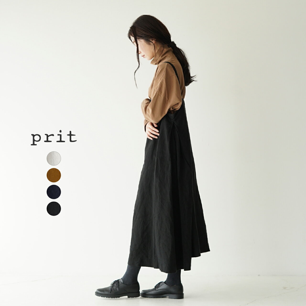 プリット prit キャミソール フレア ワンピース レディース 2021秋冬 フレンチリネン ロング 無地 キャミワンピ ブラック グレー ネイビー ブラウン P80208 【送料無料】0802