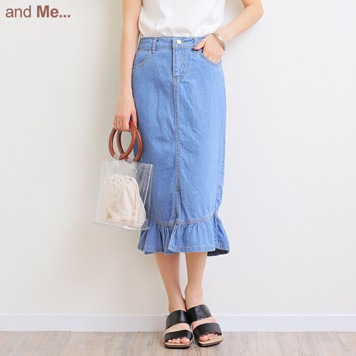 L-10L すごのびストレッチデニムひざ丈スカート(ゆったりヒップ) ボトムス スカート 30代 40代 50代 女性 春 秋 オールシーズン 大きいサイズ レディース デニムスカート 膝丈 伸びる ストレッチスカート UVカット 洗濯機洗いOK ストレッチ デニム 無地・無地調