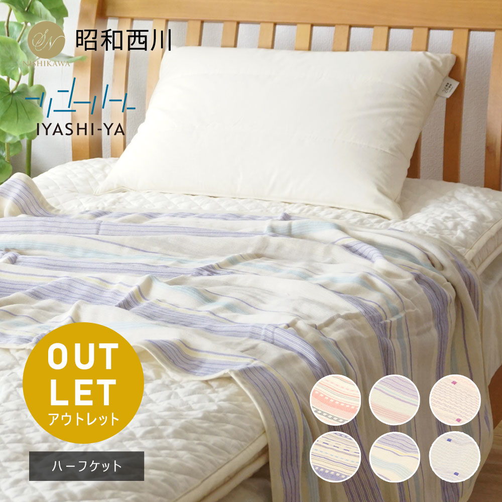 訳あり 色柄おまかせ 西川 6重ガーゼハーフケット 日本製 送料無料 綿100% 昭和西川 IYASHIYA 6重織ガーゼ 愛知 丸洗い 洗濯可 贈り物 プレゼント ギフト